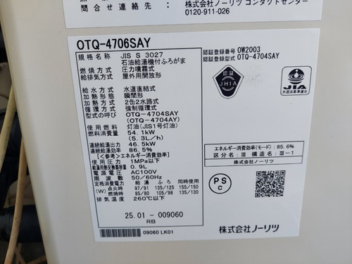 静岡市葵区呉服町 ノーリツ石油給湯機付ふろがまOTQ-4706SAY 給湯器交換工事