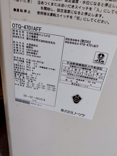 藤枝市駅前 ノーリツ石油給湯機付ふろがまOTQ-4701AFF→ノーリツ給湯器 給湯器交換工事