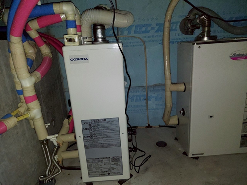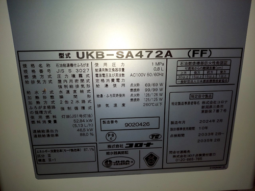 三島市本町 コロナ石油給湯機付ふろがまUKB-SA472A(FF) 給湯器交換工事