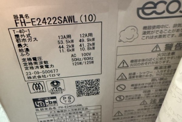 静岡市駿河区 Paloma給湯器FH-E2422SAWL 給湯器交換工事