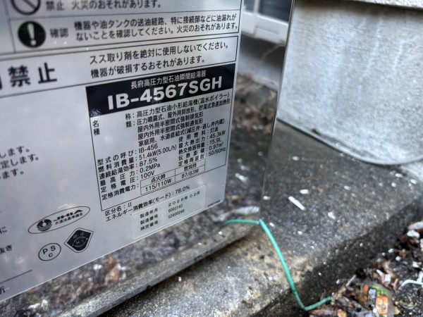 富士宮市 長府 石油給湯器 IB-4567SGH 給湯器交換工事