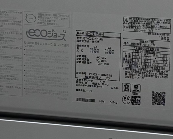 藤枝市 NORITZ GT-C2472SAW-1 給湯器交換工事